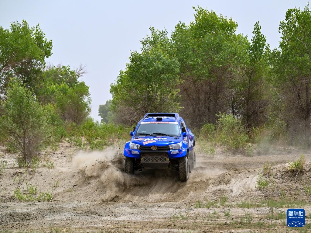 5月29日,亞帝龍行天下拉力車隊車手程兵、領航員何偉駕駛賽車在比賽中。新華社記者 陳朔 攝