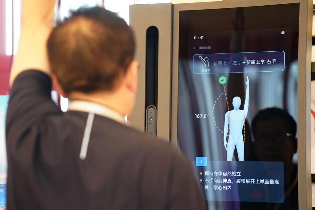 5月29日,與會人員在現場體驗健康管理儀器。新華社記者 邵瑞 攝
