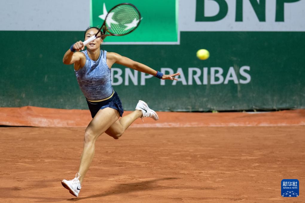 5月30日,鄭欽文在比賽中回球。新華社記者 孟鼎博 攝