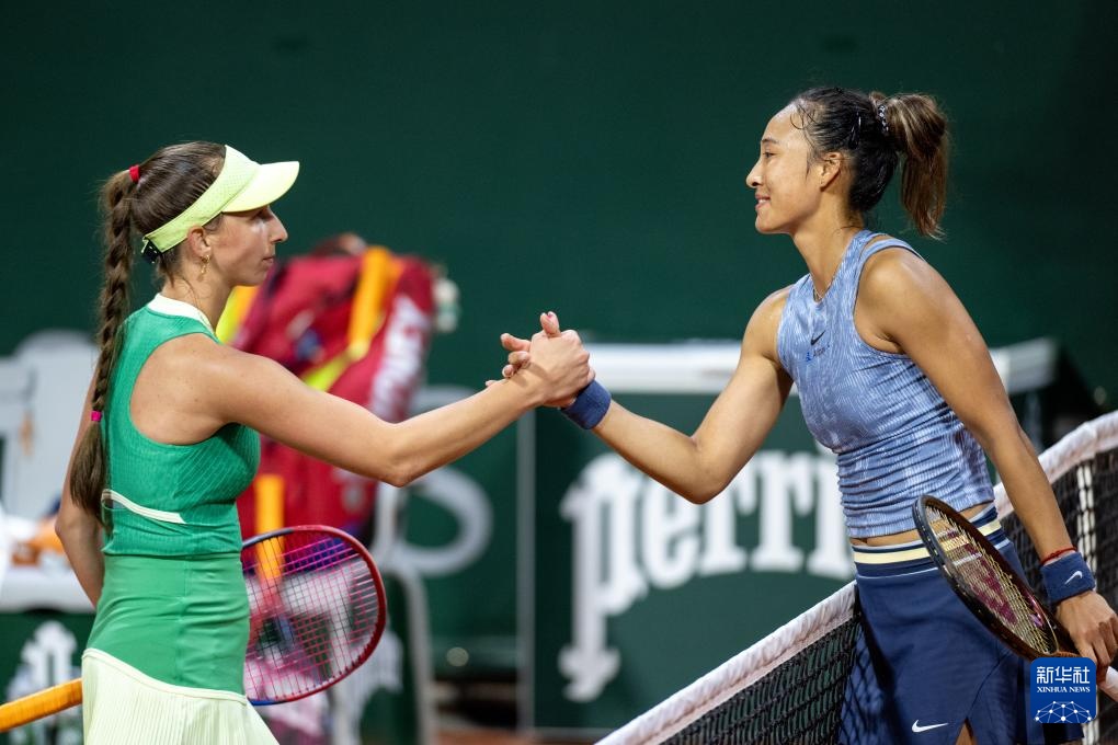 當日,在2024法國網球公開賽女子單打第二輪比賽中,中國選手鄭欽文2比0戰勝德國選手科爾帕奇,晉級第三輪。