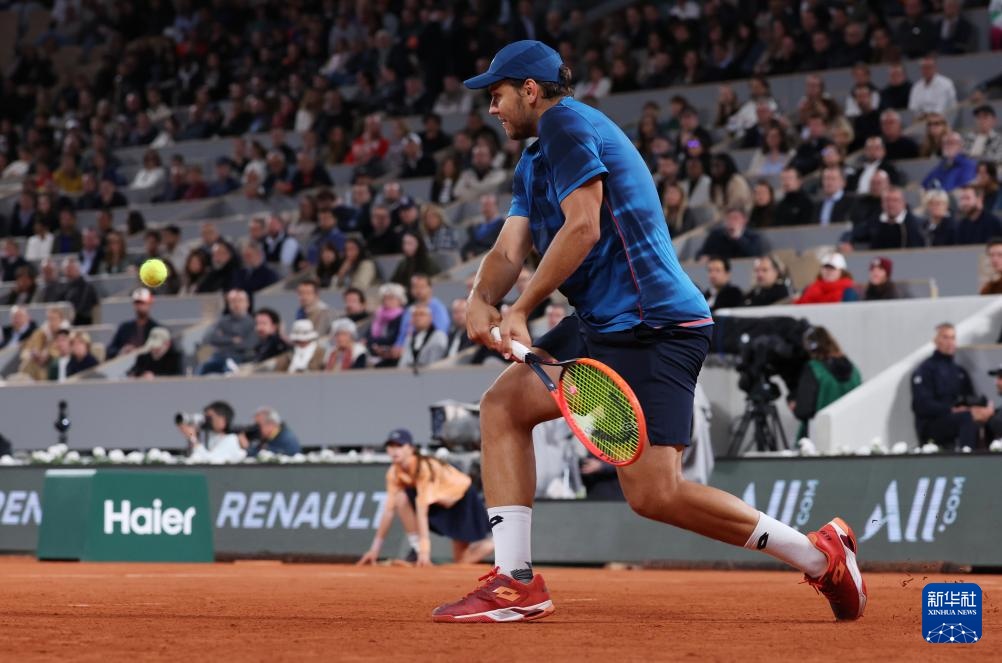5月31日,辛納在比賽中回球。