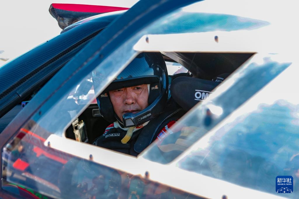 6月1日,多耐減震器車隊中國車手區志斌、領航員于澤順在工作人員指引下進入等候區。新華社記者 陳朔 攝