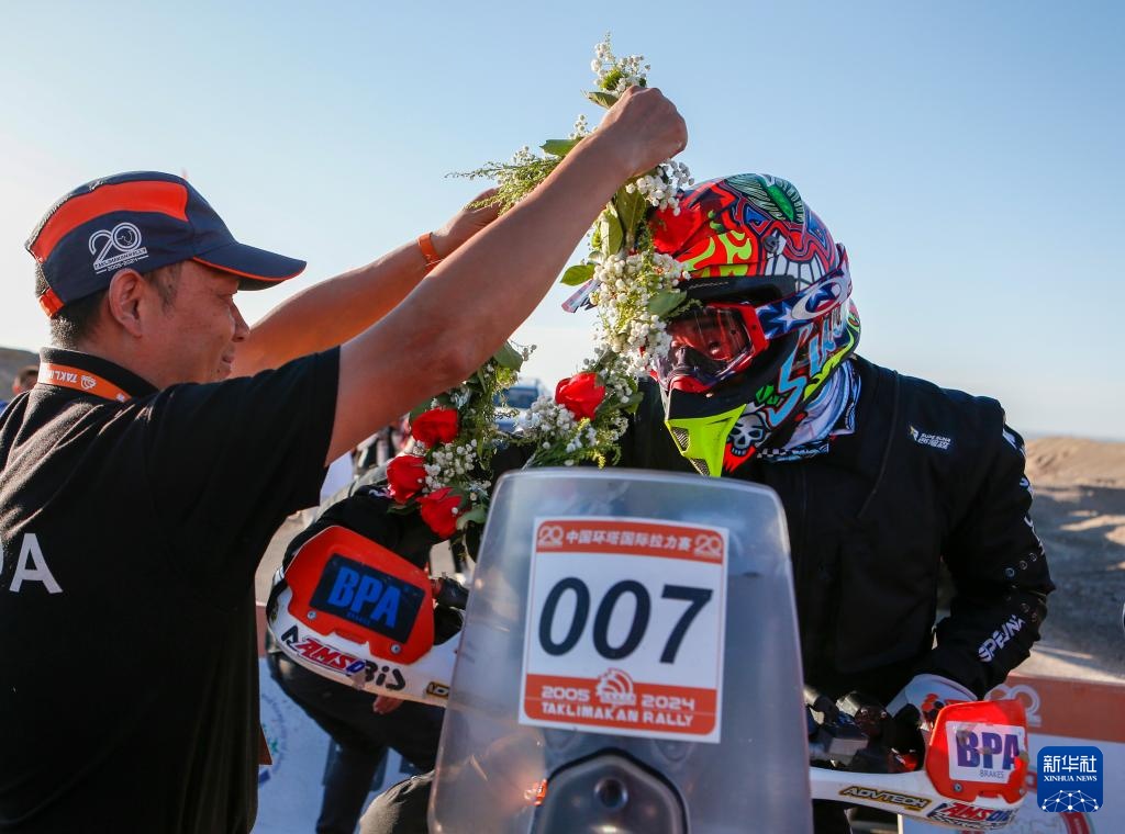 當日,2024年中國環塔國際拉力賽在新疆阿克蘇市完成第十賽段的比賽后順利收官。