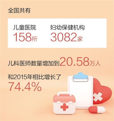 本報(bào)北京6月2日電 (記者白劍峰)記者日前從國家衛(wèi)生健康委新聞發(fā)布會(huì)上獲悉:我國兒童健康水平持續(xù)提升。目前,全國共有兒童醫(yī)院158所,婦幼保健機(jī)構(gòu)3082家。全國每千名兒童床位數(shù)達(dá)到了2.7張,和2015年相比增加了0.27張。全國兒科醫(yī)師數(shù)量增加到20.58萬人,和2015年相比,增長(zhǎng)了74.4%。