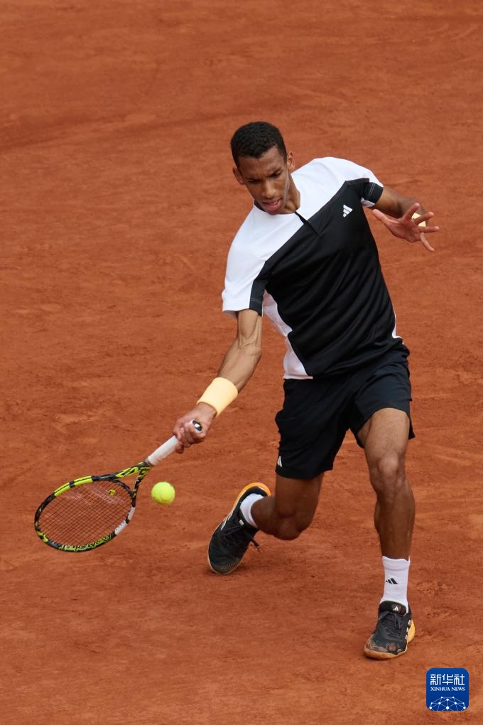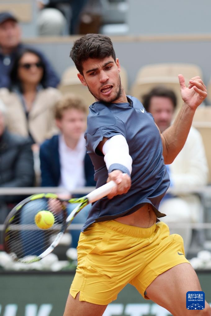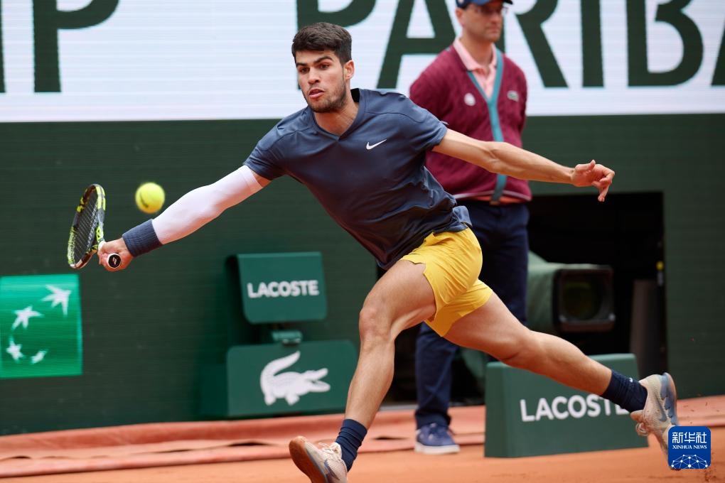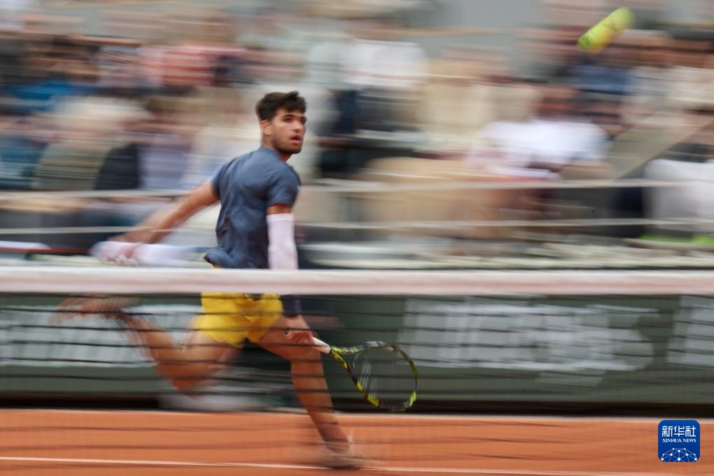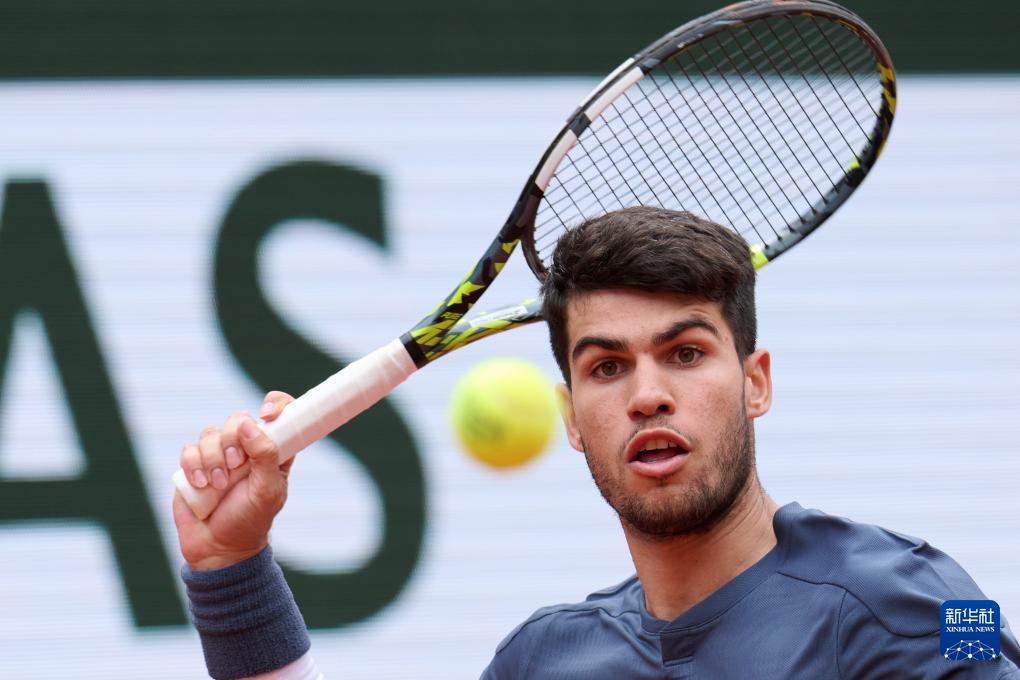6月2日,阿爾卡拉斯在比賽中回球。新華社記者 孟鼎博 攝