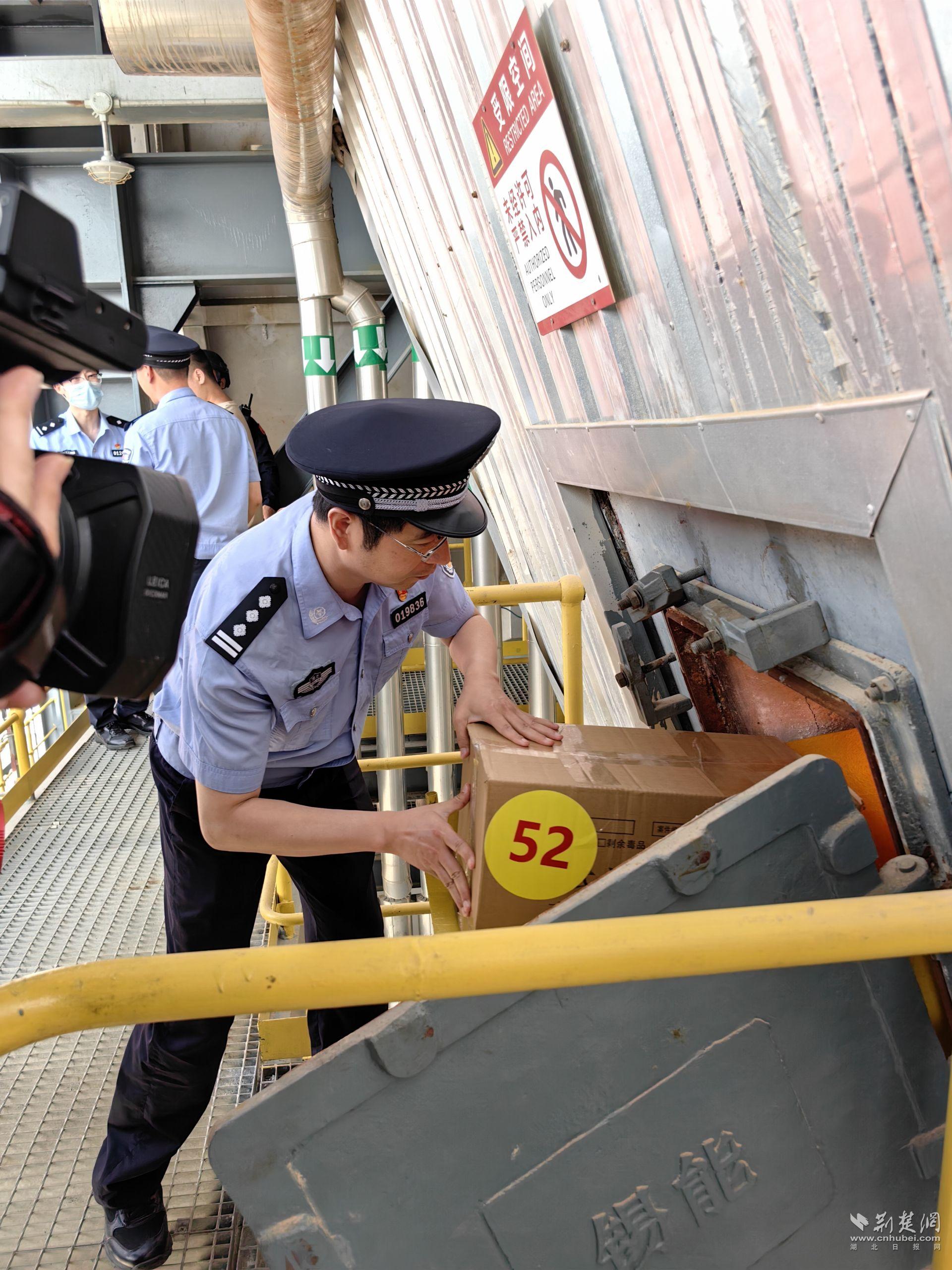 上午9時許,記者在蔡甸區某危化物品處理廠內看到,印有“毒品”字樣的紙箱整齊擺放在熱解爐前,里面裝滿了此次集中銷毀的毒品,數名全副武裝的特警在現場警戒。