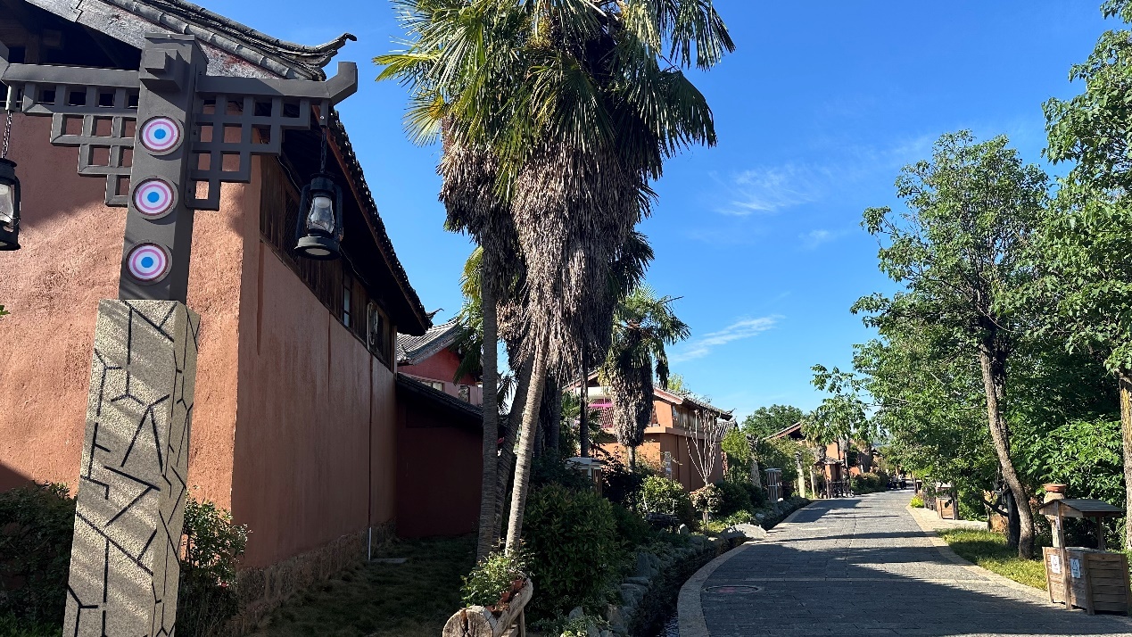 走進海南村,踩著村莊整潔的石板路,遠遠望去一片統一的赭紅色墻面,村道旁的綠化和裝飾,小橋與流水,顯得端莊大氣、古樸悠然。