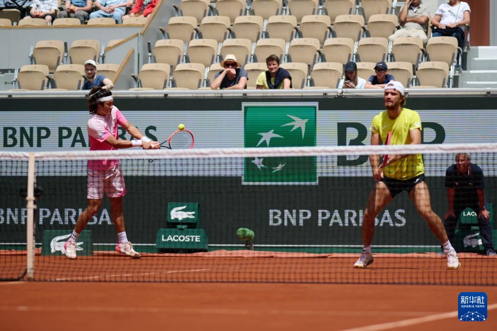 6月4日,張之臻/馬哈奇(右)在比賽中。新華社記者 孟鼎博 攝