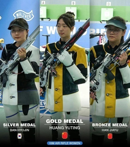 在男子十米氣步槍決賽中,中國小將盛李豪以254.5環(huán)的成績打破世界紀錄奪冠。女子十米氣步槍決賽,17歲的黃雨婷憑借最后兩槍的穩(wěn)定發(fā)揮,以0.1環(huán)的優(yōu)勢實現(xiàn)逆轉(zhuǎn),最終以252.7環(huán)的成績奪冠,另一位中國選手韓佳予獲得銅牌。