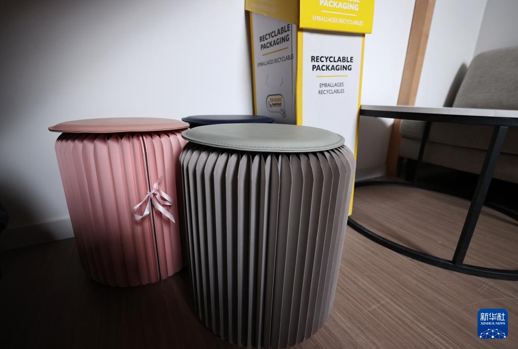 這是6月4日在巴黎奧運村和殘奧村運動員公寓內拍攝的可折疊座椅。新華社記者 高靜 攝