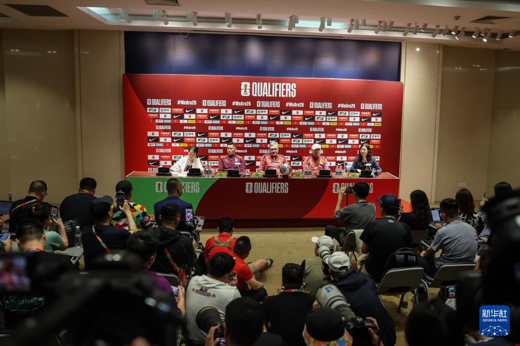 這是6月5日拍攝的中國隊(duì)新聞發(fā)布會現(xiàn)場。新華社記者 潘昱龍 攝