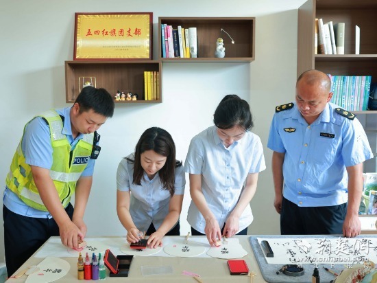 活動現場,一場別開生面的“畫漆扇,傳非遺”環節吸引了眾多目光。收費站員工向高警、路政人員詳細介紹了漆扇的起源、文化歷史內涵以及制作技藝,并準備了端午非遺漆扇手工DIY材料。大家以漆為媒,以水作畫,在扇面上蓋上了刻有“端午安康”“宜路蘭香”等字跡的印章,親手制作了屬于自己獨一無二的端午漆扇,體驗非遺大漆工藝的傳承,感受流云變換的中式美學和中國傳統工藝的獨特魅力。