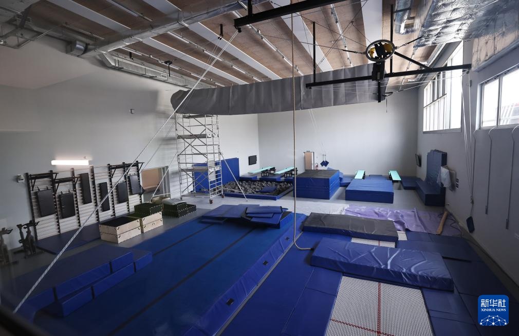 這是巴黎奧林匹克水上運動中心內的跳水運動員陸地訓練房(6月5日攝)。新華社記者 高靜 攝
