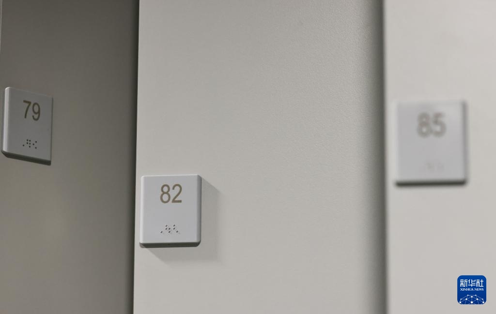 這是巴黎奧林匹克水上運動中心內儲物柜上帶有盲文的標簽(6月5日攝)。新華社記者 高靜 攝