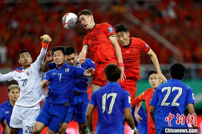 2026年世界杯亞洲區(qū)預(yù)選賽36強(qiáng)賽第五輪比賽6日進(jìn)行,中國(guó)男足在沈陽(yáng)主場(chǎng)以1比1戰(zhàn)平泰國(guó)隊(duì)。中新社記者 富田 攝