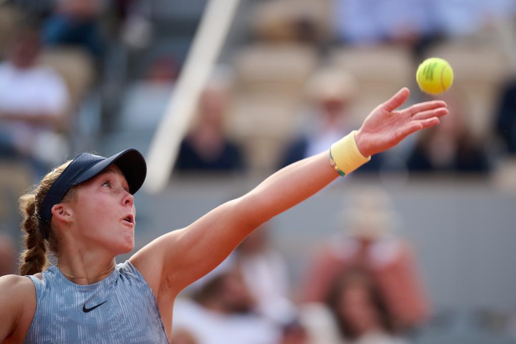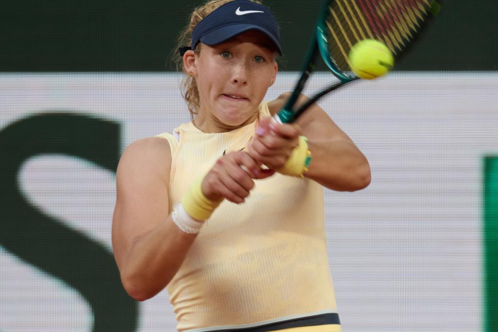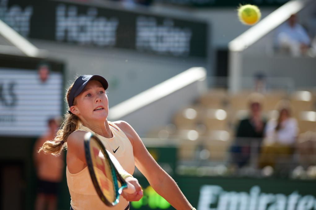 6月6日,米拉·安德烈耶娃在法網(wǎng)女單半決賽中。新華社記者 孟鼎博 攝