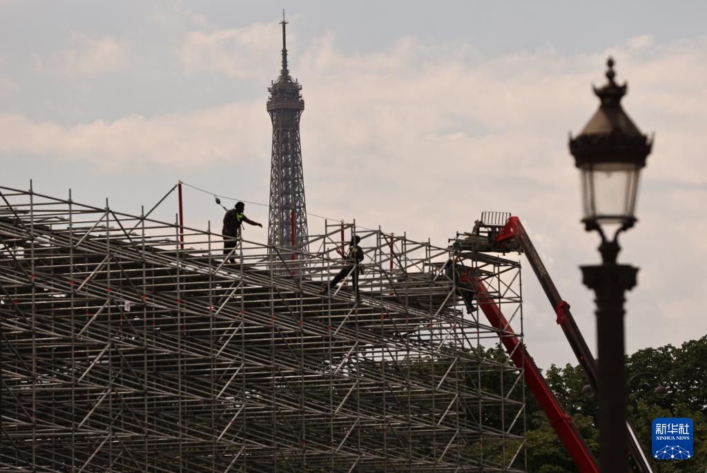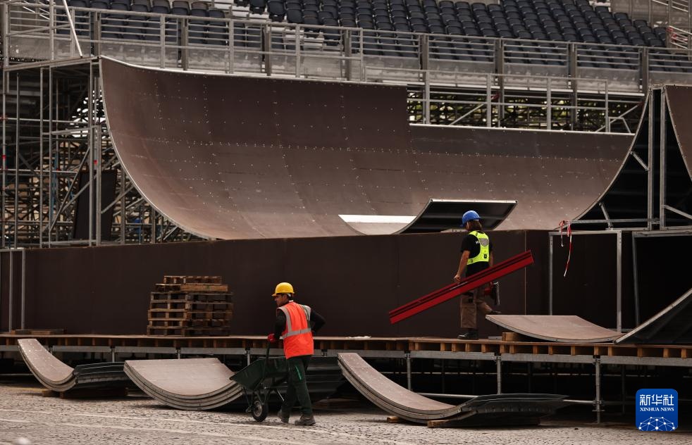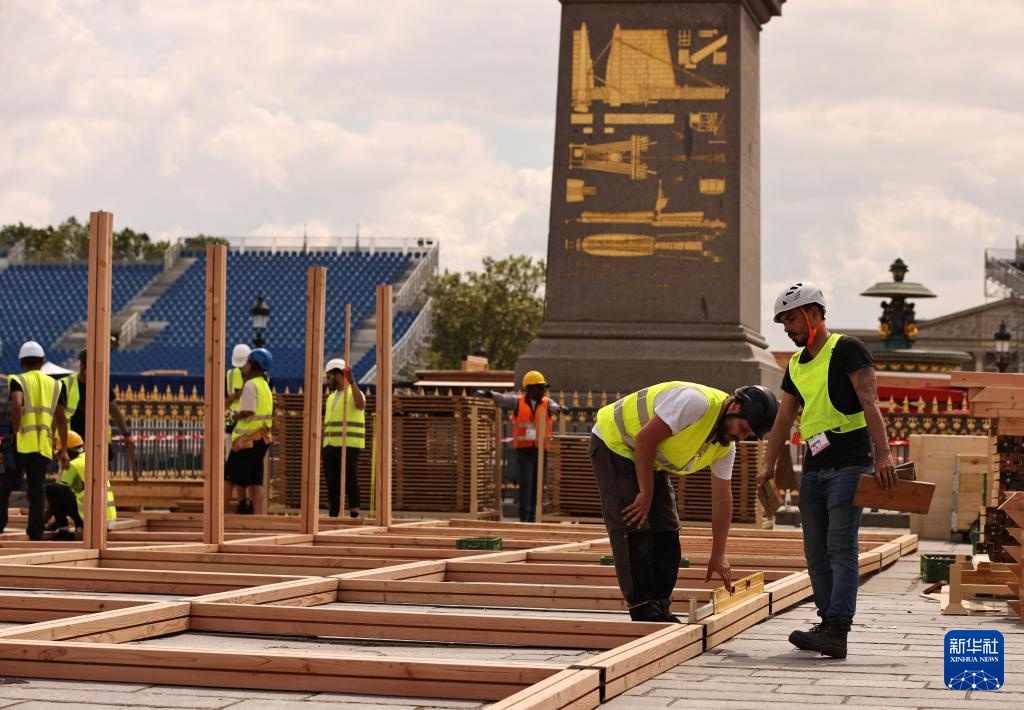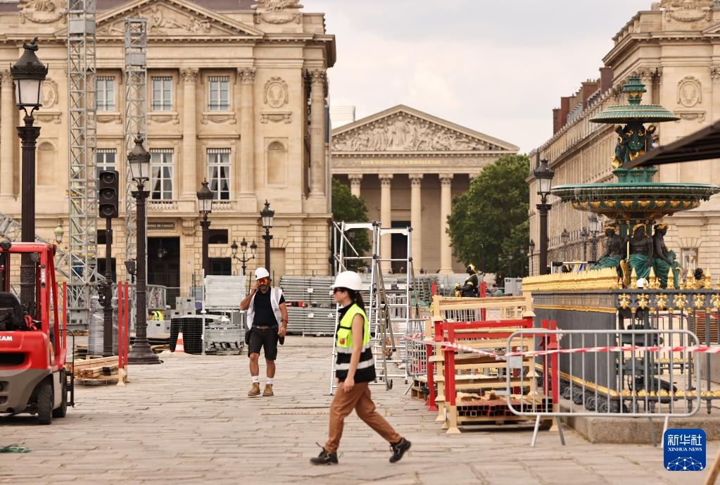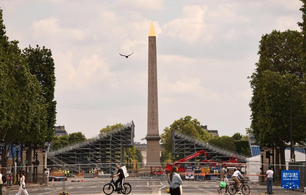 這是6月4日在位于法國(guó)巴黎市中心的協(xié)和廣場(chǎng)拍攝的臨時(shí)比賽場(chǎng)地搭建現(xiàn)場(chǎng)。這里將在巴黎奧運(yùn)會(huì)期間舉辦滑板、三人籃球、自由式小輪車和霹靂舞等項(xiàng)目。新華社記者 高靜 攝