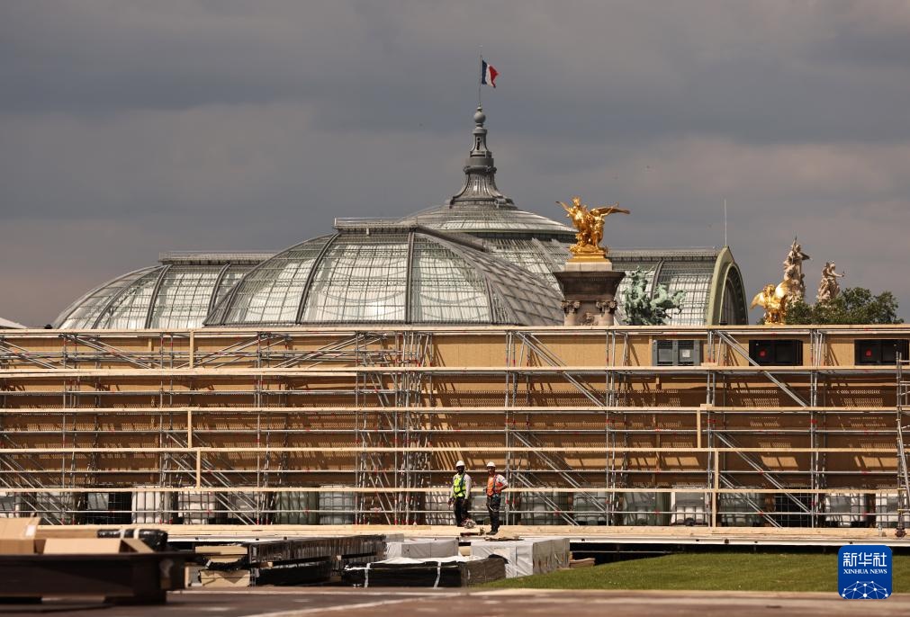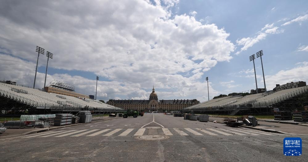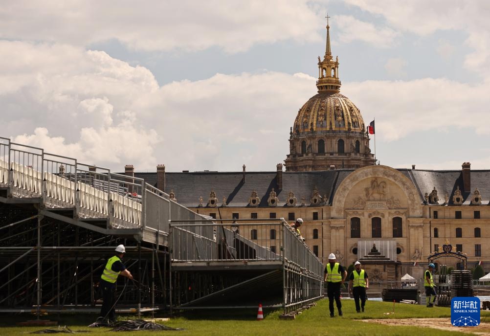 這是6月4日在位于法國(guó)巴黎市中心的榮軍院廣場(chǎng)拍攝的臨時(shí)比賽場(chǎng)地搭建現(xiàn)場(chǎng)。這里將在巴黎奧運(yùn)會(huì)期間舉辦射箭比賽。新華社記者 高靜 攝