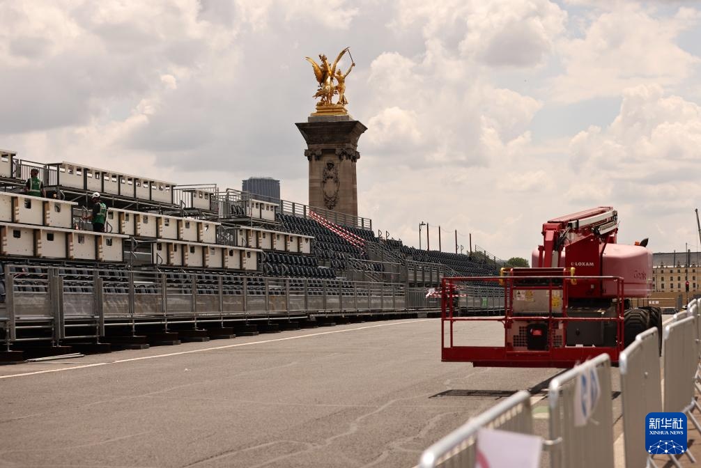 這是6月4日在位于法國(guó)巴黎市中心的亞歷山大三世橋拍攝的臨時(shí)比賽場(chǎng)地搭建現(xiàn)場(chǎng)。這里將是巴黎奧運(yùn)會(huì)多個(gè)比賽項(xiàng)目的終點(diǎn),包括公路自行車個(gè)人計(jì)時(shí)賽、游泳馬拉松、鐵人三項(xiàng)比賽。新華社記者 高靜 攝