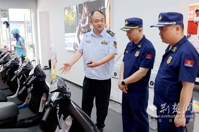 荊楚網(湖北日報網)訊(通訊員 彭翔宇)6月6日,荊州市沙市區消防救援大隊聯合區市場監督管理局開展電動自行車銷售網點安全檢查。