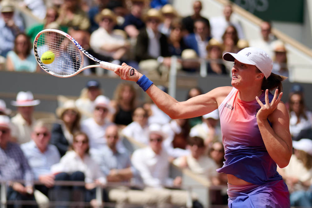 6月8日,斯維亞特克在比賽中回球。新華社記者 孟鼎博 攝