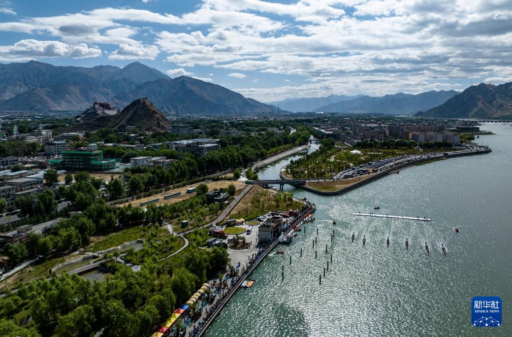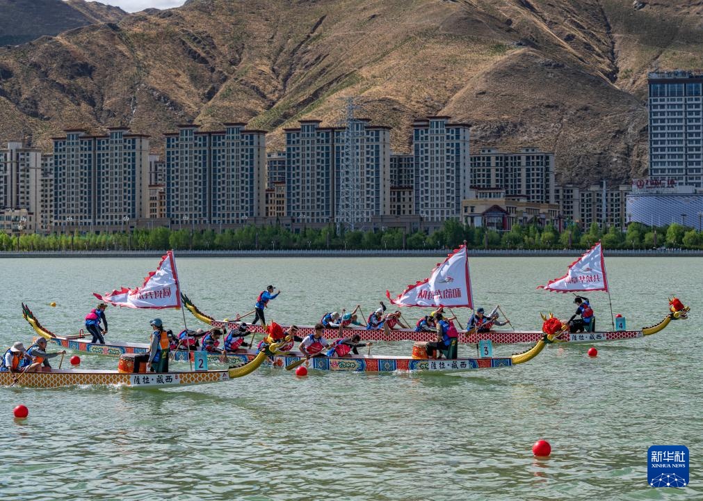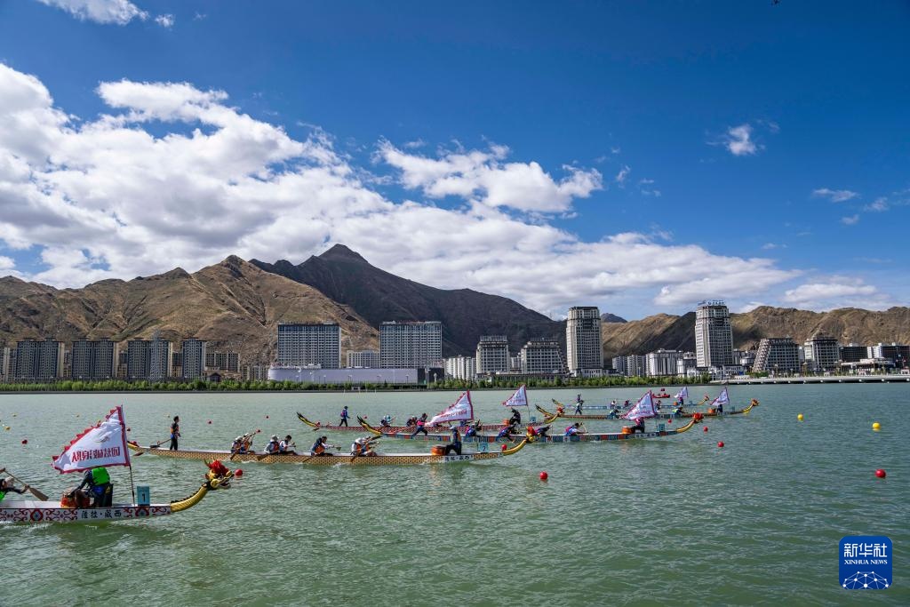 當(dāng)日,2024年西藏自治區(qū)端午節(jié)牛皮船(龍舟)賽在拉薩濱河公園水域舉行,共有來自西藏自治區(qū)的26支代表隊參加,其中牛皮船隊伍20支、龍舟隊伍6支。這是在拉薩首次舉辦的中國海拔最高的城市龍舟賽。
