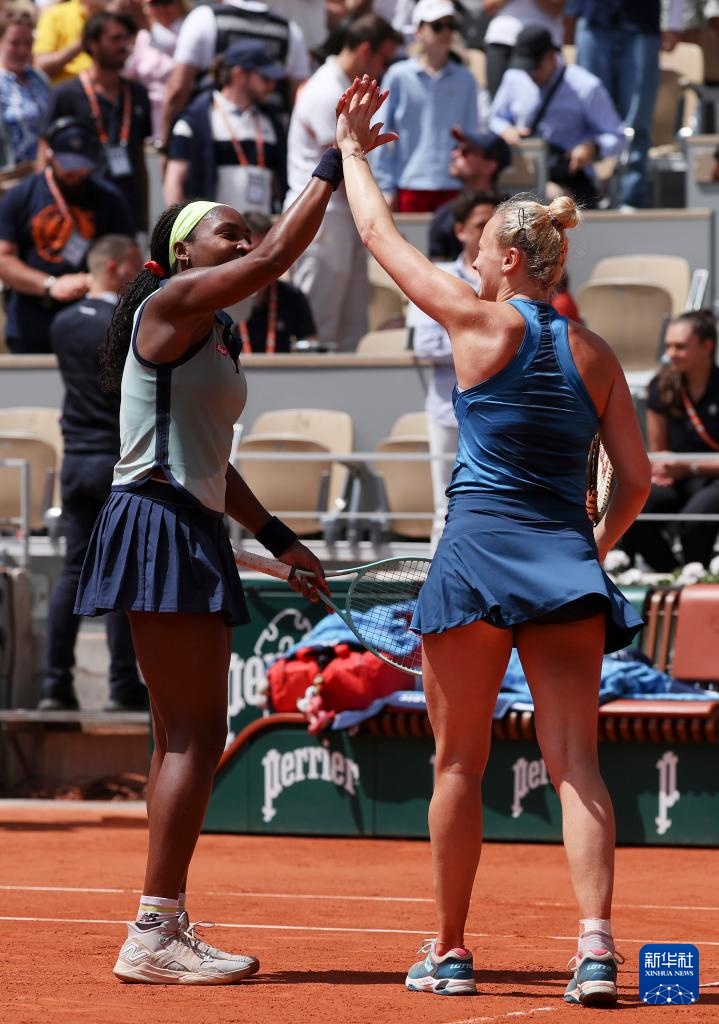 6月9日,高芙(左)/西尼亞科娃慶祝勝利。