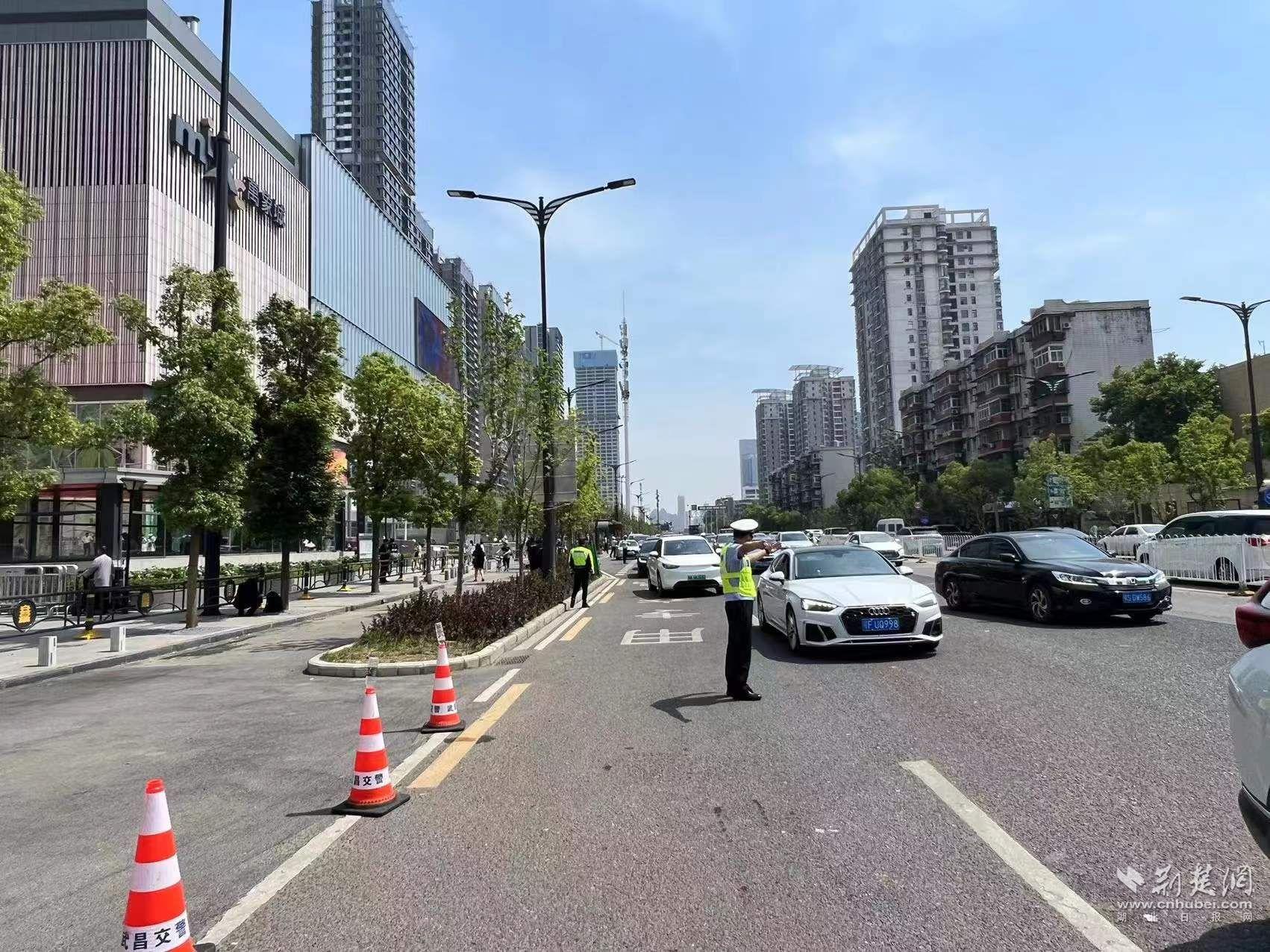 武昌交警在開(kāi)業(yè)不久的萬(wàn)象城商圈外疏導(dǎo)車(chē)流。通訊員供圖
