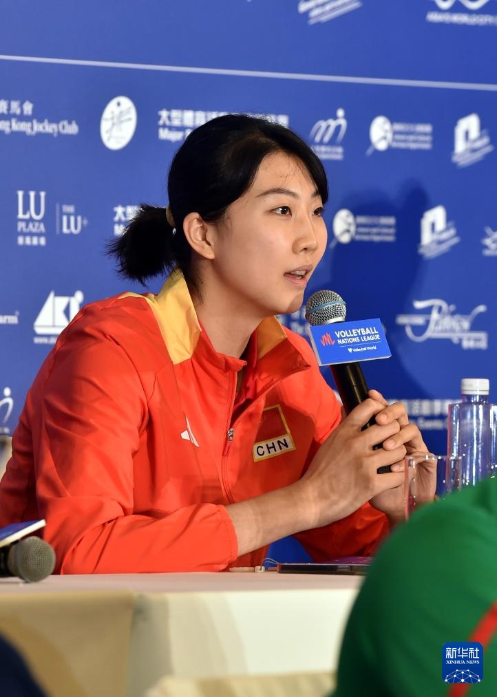 6月10日,中國隊隊長袁心玥在新聞發布會上回答記者提問。新華社記者 盧炳輝 攝