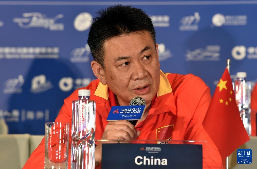 6月10日,中國隊主教練蔡斌在新聞發布會上回答記者提問。新華社記者 盧炳輝 攝