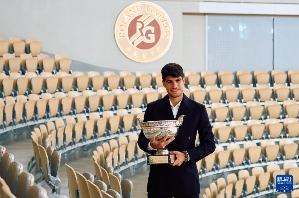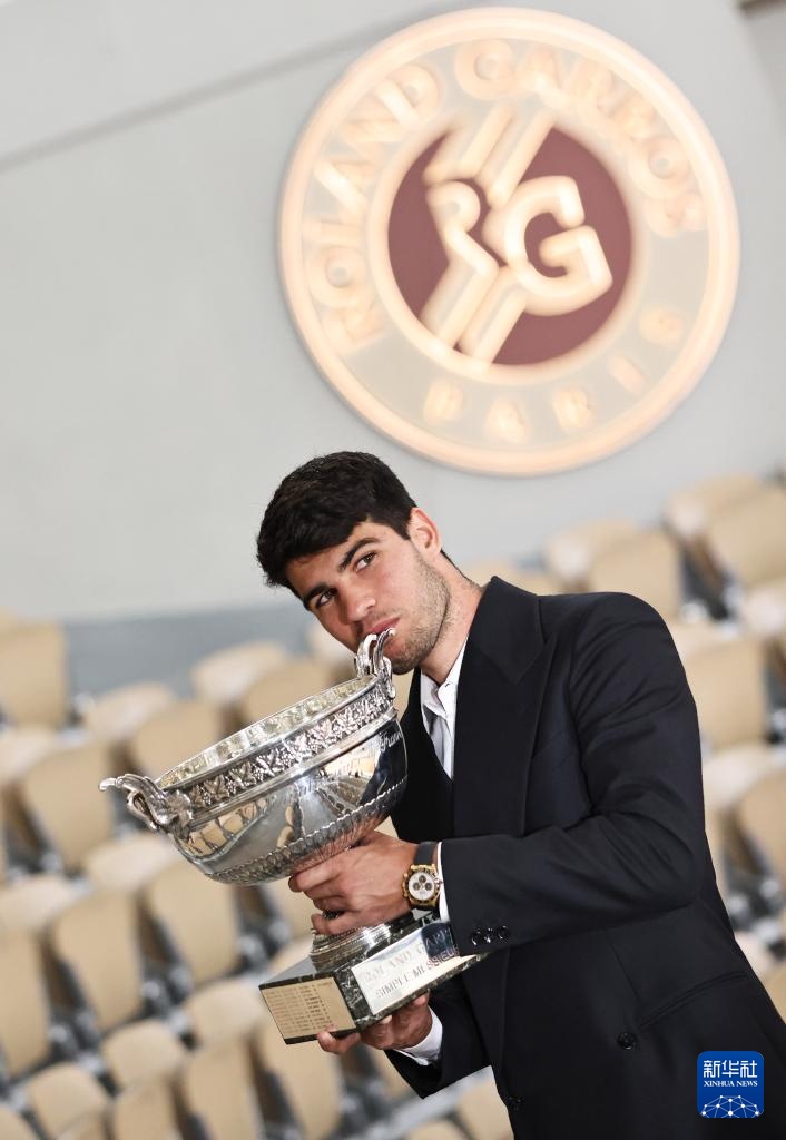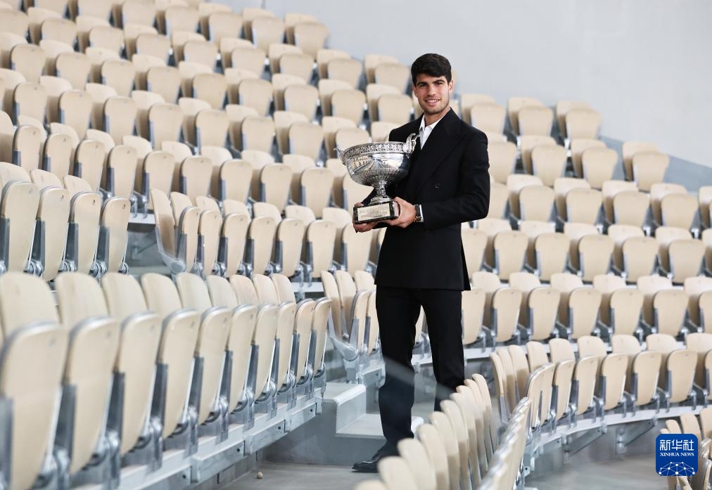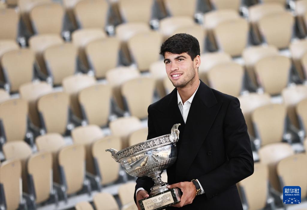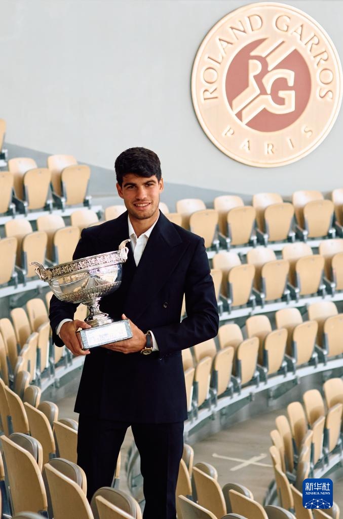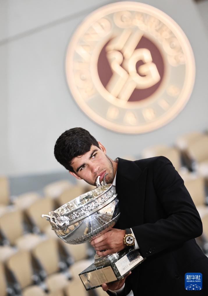 6月10日,阿爾卡拉斯捧杯留影。新華社記者 高靜 攝
