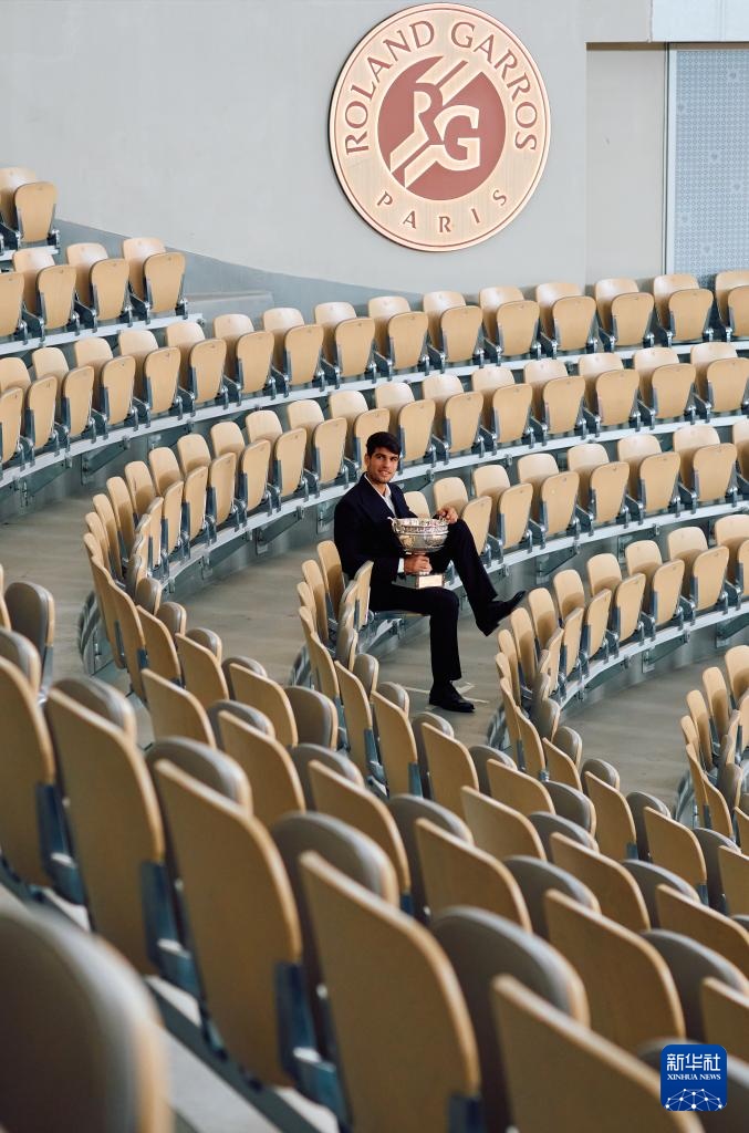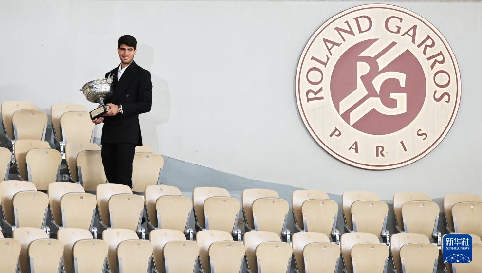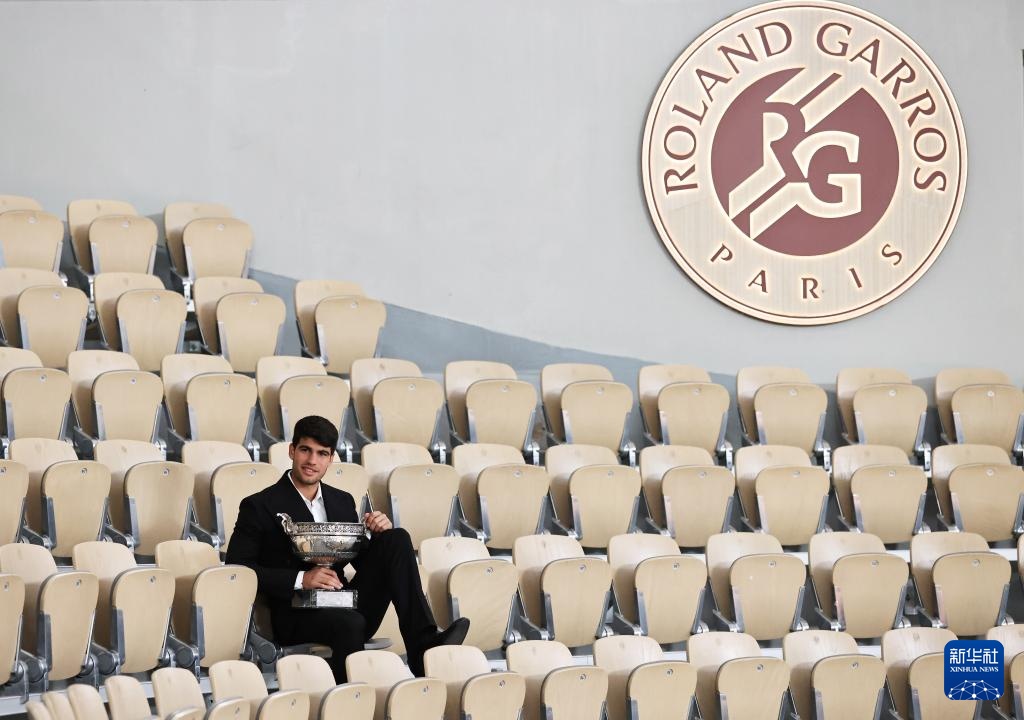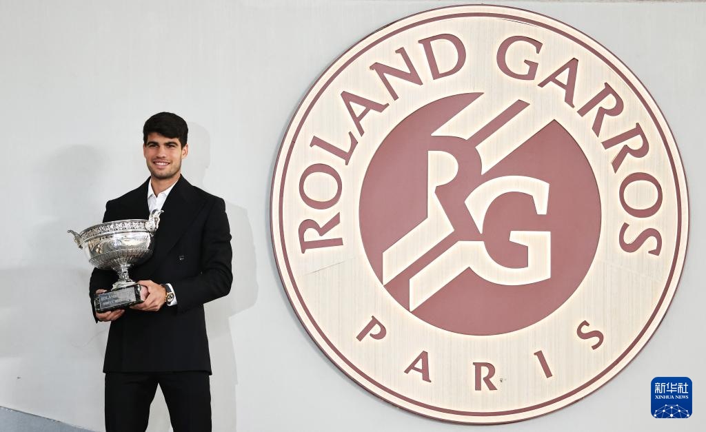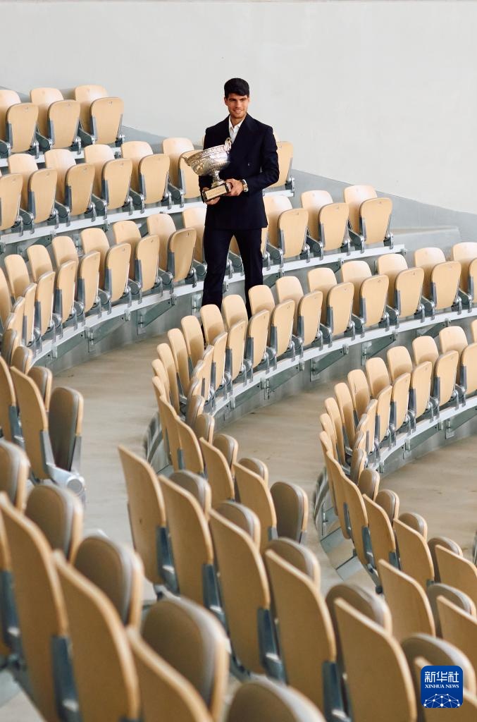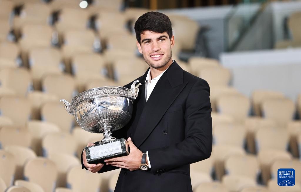 6月10日,阿爾卡拉斯捧杯留影。新華社記者 高靜 攝