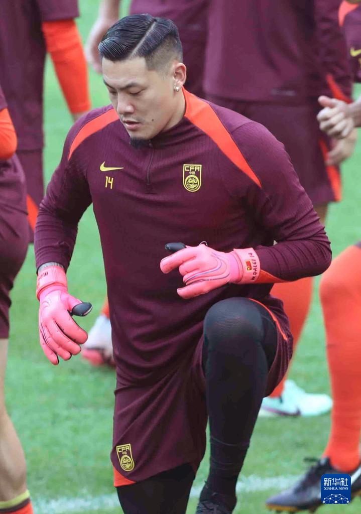 6月10日,中國隊(duì)守門員王大雷在訓(xùn)練中。新華社記者 姚琪琳 攝