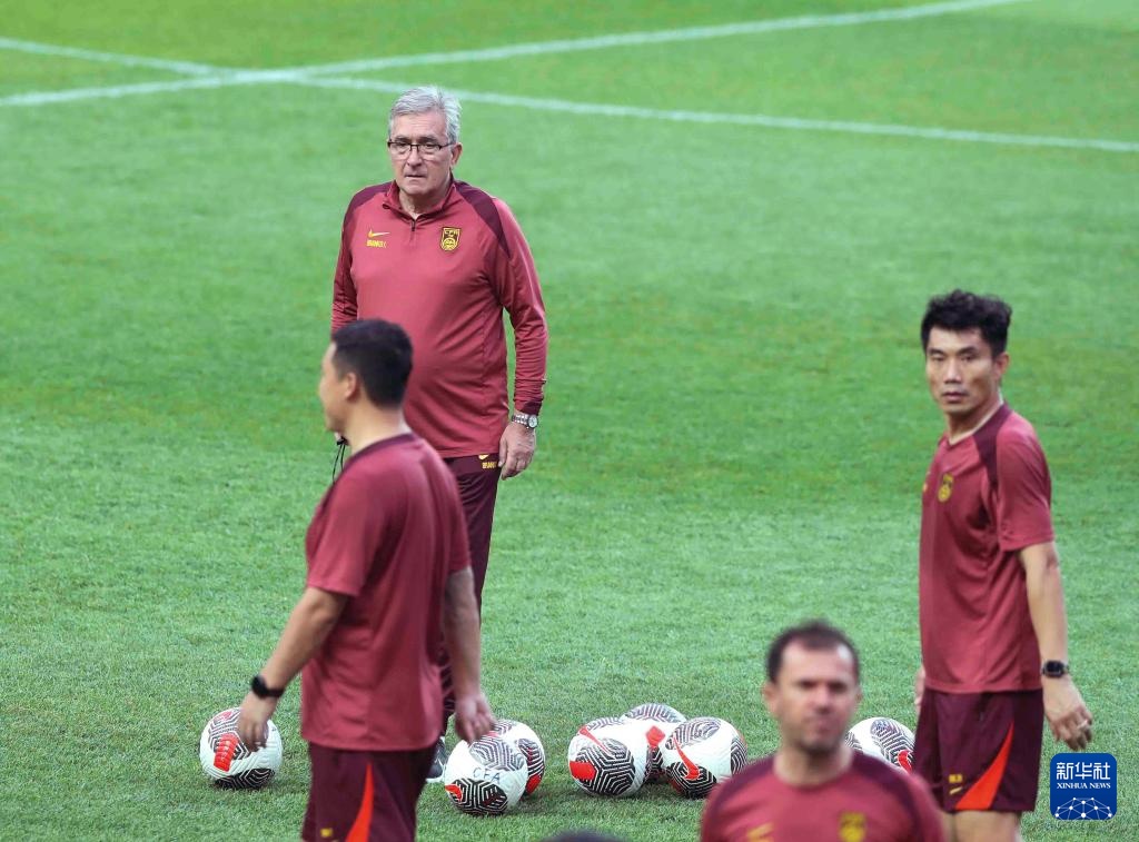 6月10日,中國隊(duì)主教練伊萬科維奇(上)在訓(xùn)練中。新華社記者 姚琪琳 攝
