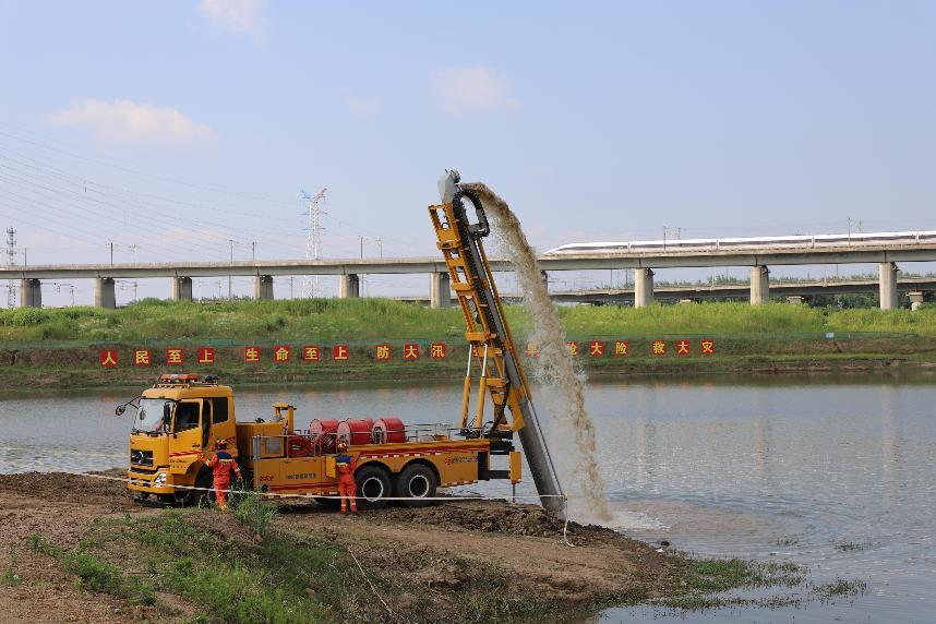 “中國一冶府澴河項目部區域遭遇暴雨侵襲,每小時雨量超過150毫米,出現局部溢壩潰壩風險,人員失聯。”現場指揮長迅速啟動長江新區防汛Ⅱ級響應,調集轄區各應急救援隊集結,同時調用無人偵測船、無人機實時偵測,為指揮部及時掌握災區水情態勢、堤壩情況及救援形勢提供參考。