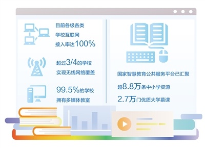 智慧校園建設,離不開基礎設施的不斷完備。我國智慧教育基礎設施設備環境基本建成。“依托千兆光網、5G等網絡基礎設施,智慧校園實現了師生、設備、教育資源的廣泛連接。”中國信息通信研究院技術與標準研究所副總工程師臧磊表示,“智慧校園提供的在線教學、全息課堂、虛擬仿真實驗實訓等新型教學方式,將優質課程資源、情境化專題資源融入日常教學,為學生提供真實生動的學習場景,構建起超越實體教室和校園邊界的學習模式。”