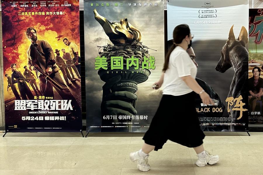 6月7日,在北京一家影院,一名女子電影海報(bào)前走過(guò)。新華社記者 申安妮 攝
