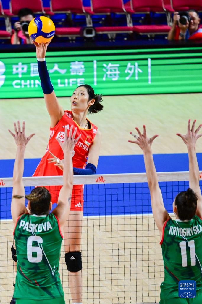 當日,在世界女排聯賽中國香港站比賽中,中國隊3比0戰勝保加利亞隊。