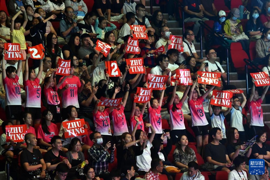 6月11日,球迷為中國女排加油。新華社記者 盧炳輝 攝