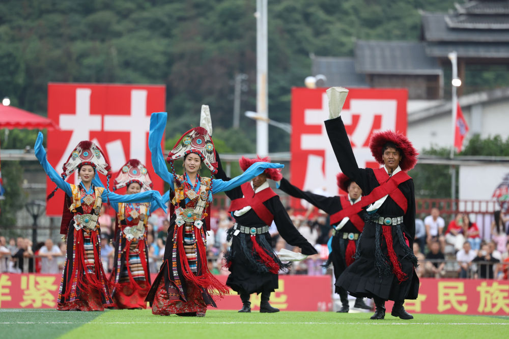 6月10日,演員在比賽間隙表演薩迦索舞。新華社記者 劉續(xù) 攝