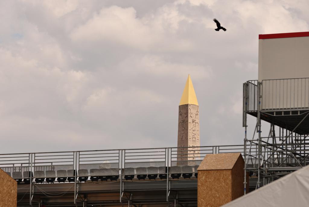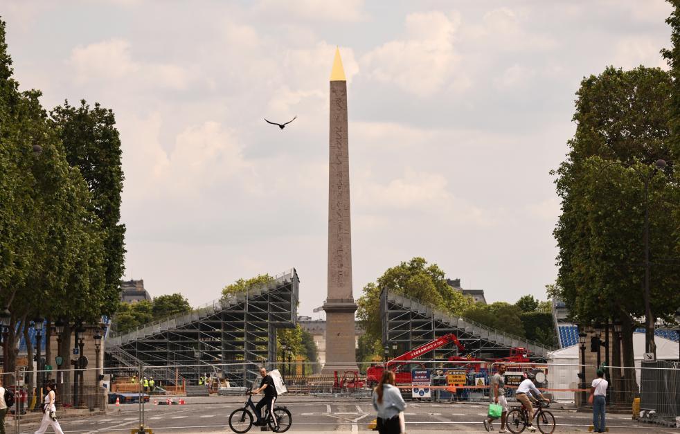 ↑6月4日在位于法國巴黎市中心的協和廣場拍攝的臨時比賽場地搭建現場。
