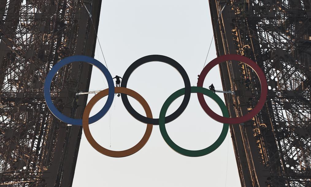 就在上周,巨大的奧運五環懸掛在了鐵塔上