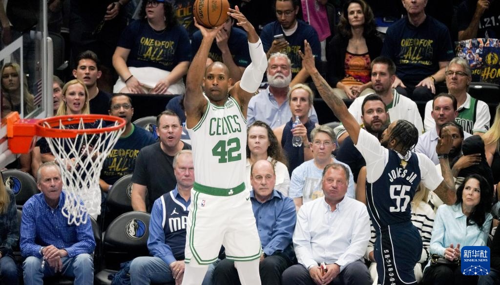 6月12日,凱爾特人隊球員艾爾·霍福德(左)在比賽中投籃。新華社記者 吳曉凌 攝