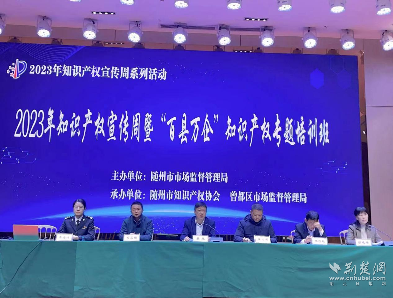 2023年4月24日,“2023年知識產(chǎn)權(quán)宣傳周暨‘百縣萬企’知識產(chǎn)權(quán)專題培訓(xùn)班”舉行,隨州市100余家重點(diǎn)企業(yè)代表參加了培訓(xùn)