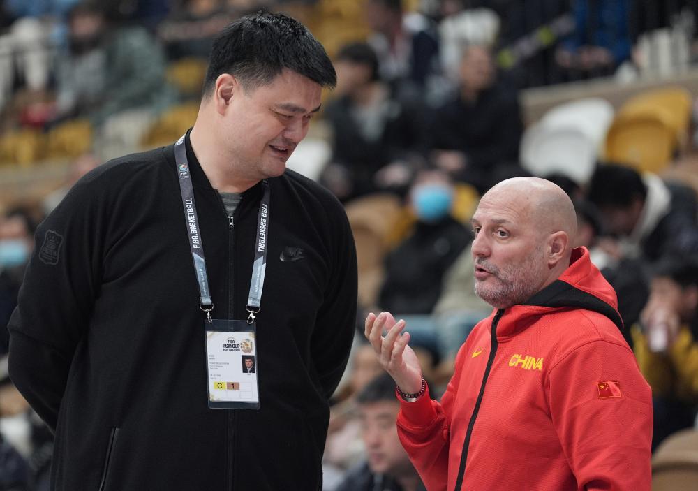 圖為2024年2月22日,在國際籃聯2025男籃亞洲杯預選賽賽前,時任中國隊主教練喬爾杰維奇(右)與中國籃協主席姚明交流。新華社記者 孟永民 攝
