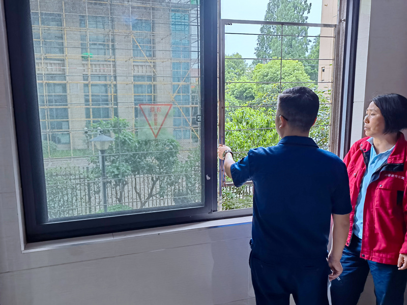 消防監(jiān)督員對拆窗破網(wǎng)工作整改情況進(jìn)行檢查 彭翔宇/攝