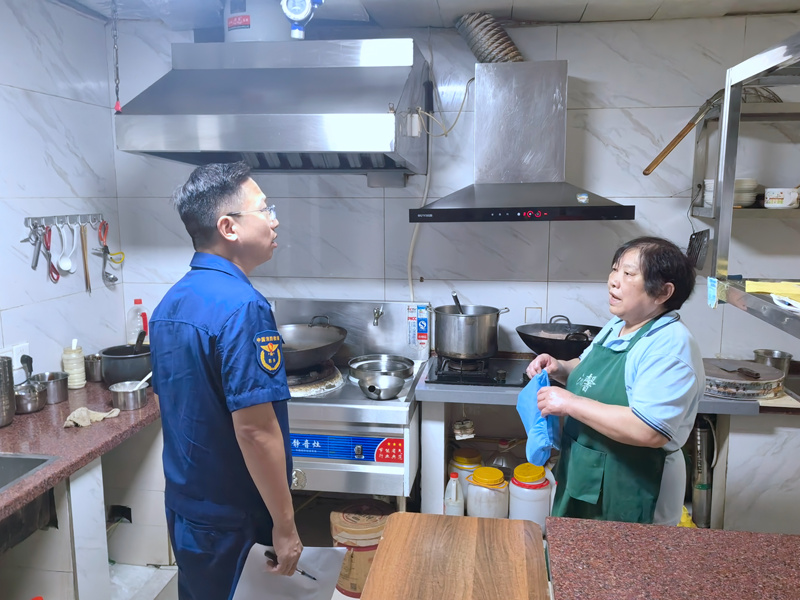消防監(jiān)督員對廚房動火區(qū)域進(jìn)行檢查 彭翔宇/攝