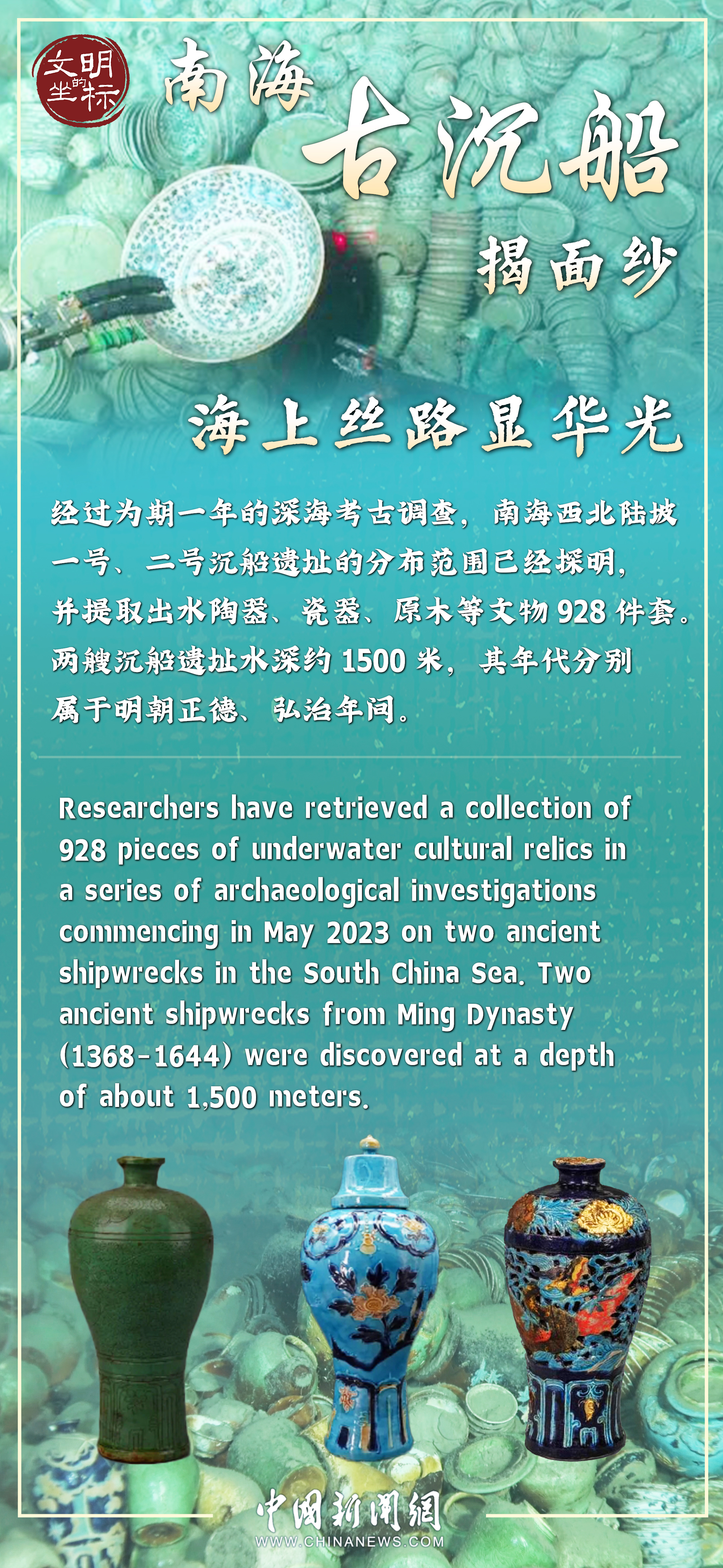 象形執壺、琺華梅瓶、青花人物紋罐……經過為期一年的深海考古,位于南海水下1500米處的兩艘古代沉船揭開了神秘面紗。6月13日,國家文物局在中國(海南)南海博物館召開“考古中國”重大項目重要進展工作會,介紹對南海西北陸坡一號、二號沉船遺址的考古成果。如同打開了封存數百年的“時光寶盒”,提取的928件套精美文物,仿佛將檣桅如林、千帆競波,商賈云集、一派繁華的古代海上絲綢之路展示在我們眼前。