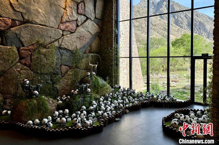 藝術館內,隨處可見憨態可掬的熊貓元素,與窗外的賀蘭山交相輝映?!≈行戮W記者 李佩珊 攝