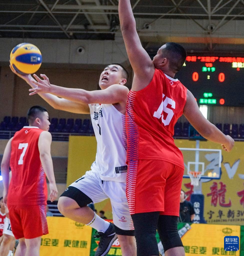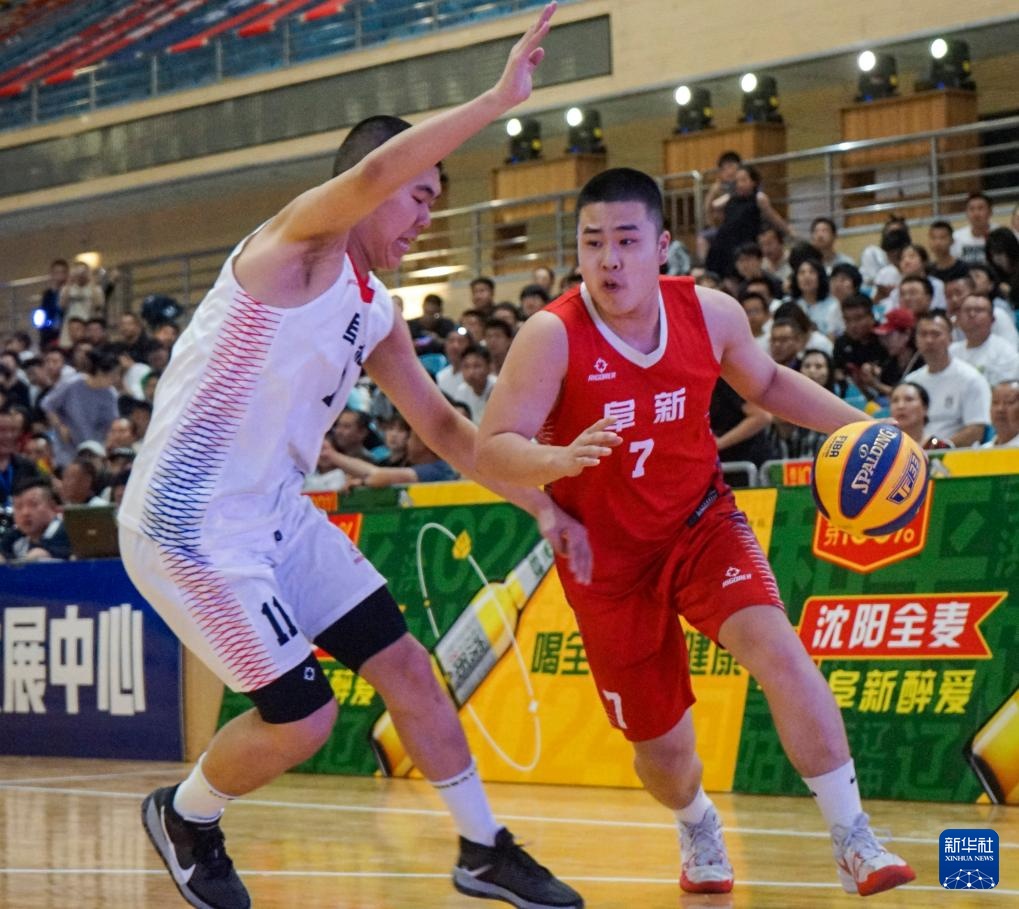 6月15日,韶華一隊球員趙建維(左)在比賽中上籃。新華社記者 龍雷 攝